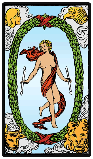 El Mundo es un indicador de un cambio importante e inexorable, de amplitud tectónica. Este cambio representa una oportunidad para tu para terminar con lo Viejo y darle un buen inicio a lo Nuevo. Esta carta indica un crecimiento en la madurez, un sentido de equilibrio interno y un entendimiento más profundo. Sugiere que puedes estar aproximándote a una compresión más madura de tu identidad y la seguridad en ti mismo que viene con la edad. También representa la caída de las barreras, a veces de sentido espiritual, pero a veces en el sentido puramente físico, indicando un futuro con viajes.