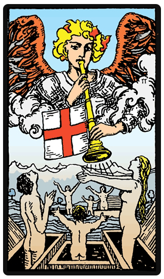 El Juicio habla sobre una transición, pero a diferencia de la Muerte o la Torre, el cambio no es súbito, ni procede de la suerte o la intuición, sino que es un cambio que proviene de la razón. Significa que los planes, que con frecuencia han tardado tiempo en llevarse a cabo, van a rendir frutos, Si apunta hacia el futuro, también puede hablar de la naturaleza del cambio. Si se necesita tomar una decisión, debes de dejar que tu mente la tome. En este caso, la lógica es mejor guía que la intuición. Debes estar preparado para tomar una gran decisión en tu vida, probablemente una que dará forma al siguiente capítulo de tu vida.