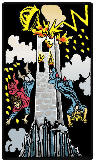 Oscura y amenazante, la Torre es la encarnación de la complicación y el conflicto. No solo el cambio, sino el movimiento brusco y desagradable causado por los acontecimientos imprevistos y traumáticos que forman parte de la vida. La Torre en tu tirada siempre es una amenaza, pero la vida inevitablemente implica tragedia, y debes de decidir si la enfrentarás con gracia.